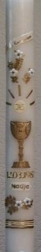 Kommunionkerze in gold und weiß. Musterkerze. Einzelne Elemente können separat verwendet werden.