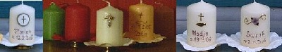 Hier sehen Sie eine Auswahl meiner Kommunionkerzen. Die verwendeten Wachsornamente, Kreuze, Pflanzenteile und anderen Symbole sind alle von mir selbst entworfen und angefertigt. Ich setzte meine eigenen Ideen um und hoffe, Interesse mit meinen Kerzen zu wecken.