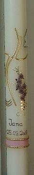 Ausschnitt aus obiger Taufkerze. Dieses Element kann natürlich auch für Jungen und sowohl auf Kommunionkerzen als auch auf Hochzeitskerzen verwendet werden.