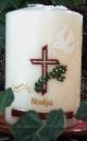 Für die Taufkerzen biete ich selbstverständlich Altarkerzen an, d.h. die Kerzen sind elfenbeinfarben (nicht weiß) und enthalten 10 % Bienenwachs. Das ist die gleiche Qualität, wie sie in den Kirchen verwendet wird. Sie brennen rußarm ab und sind praktisch tropffrei bei optimalen Bedingungen (gerade und keine Zugluft).