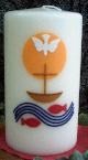 Taufkerze bunt. Kerzengröße variabel: 3, 4, 5, 6, 7 und 8 cm Durchmesser und mit verschiedenen Höhen, Altarkerzen!! Durch seine Farben ein sehr freundliches Motiv und trotzdem alles religiöse Elemente!