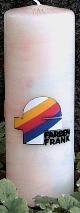 Ein gelungenes Muster für eine Kerze mit Logo. Das wichtigste hierfür ist eine vernünftige Vorlage. Eigentlich müßte sie noch in Baden-Baden im Original zu sehen sein! Kerzengröße: DM 7 cm / Höhe: 21 cm.