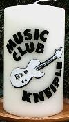 Diese Kerze steht in unserem Bühler Music Club Kneiple! Dort können Sie diese Arbeit im Original betrachten. Wenn Sie die Kerze nicht gleich finden, dann fragen Sie bitten den Wirt, er bringt sie nämlich bei bestimmten Events, die regelmäßig in seinem Hause stattfinden und immer gut besucht sind, aus diesem Grunde in Sicherheit. Er legt großen Wert darauf, daß die Kerze nicht angezündet wird und ansonsten auch nicht "bearbeitet" wird.