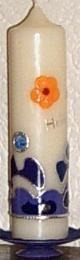 Abstrakt / Modern mit klassischem Blümchen! Für diese Kerze wurde eine Altarkerze (incl. 10 % Bienenwachs) verwendet mit den Massen: 5 cm / 25 cm.
